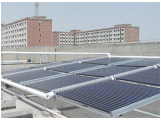 學校太陽能熱水工程組成部分:全玻璃真空管式集熱器、保溫水箱、連接管路、微電腦控制系統(tǒng)、水泵循環(huán)系統(tǒng)、輔助加熱系統(tǒng)等。
